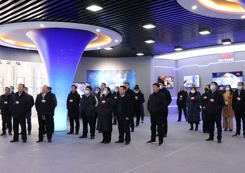 2020年12月14日,安丘市人大常委会主任任海燕带领视察团来博阳机械观摩,总经理闫吉祥对安丘市人大代表视察团的到来表示热烈欢迎,在展示车间,闫总经理对自动拆包机、管链输送机及全自动包装码垛线和拆垛拆包线、全自动装车线等产品进行了详细讲解。