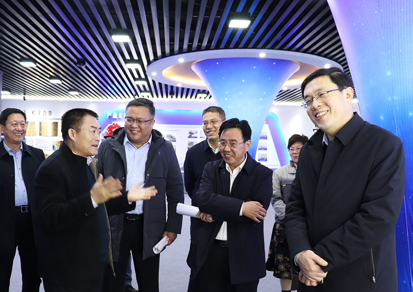 博阳机械总经理闫吉祥陪同各位领导参观了公司的产品调试车间和企业展厅,介绍了公司智能化拆码垛机器人、自动化出入库AGV、智能立体仓库等核心产品,并汇报了公司依托大数据、物联网、云计算、资源信息共享平台及利用“5G技术+互联网+智能制造+定制化服务”理念和思维方式,以科技创新为核心,以品牌战略、精细化营销战略、人才战略、信息化战略为支撑,实现了高端装备制造行业供应链、产业链的万物互联的工作成果。