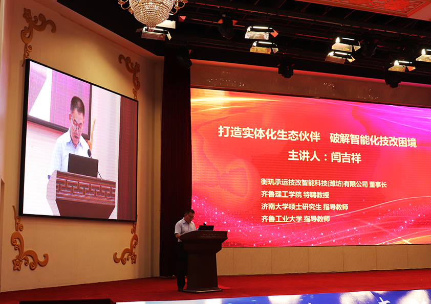 面对当前技改难题与困境,闫吉祥作为衡玑承运技改智能有限公司董事长主讲了专题为《打造实体化生态伙伴,破解智能化技改困境》的讲话。