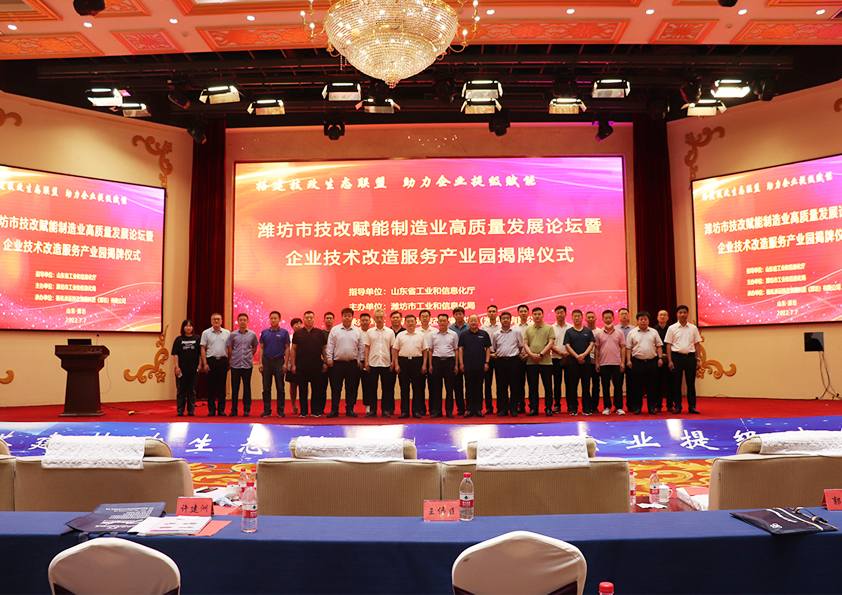 2022年7月7日,在潍坊高新区举行的潍坊市技改赋能制造业高质量发展论坛暨企业技改服务产业园揭牌仪式获得圆满成功。大会由山东省工业和信息化厅指导,潍坊市工业和信息化局主办,衡玑承运技改智能科技(潍坊)有限公司承办。