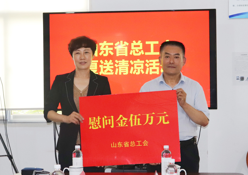 胡少华组长代表山东省总工会向安丘博阳机械制造有限公司发放价值五万元的慰问金,希望博阳机械不忘初心、砥砺前行,继续发挥好工会桥梁与纽带的作用,紧密联系党和群众,用工会助力企业发展。除此之外,并对需要帮助的困难职工进行慰问,高度赞叹其在特殊时期,始终保持饱满的精神状态,以实际行动诠释了“爱岗敬业、甘于奉献”的精神。炎炎夏日送清凉,点滴关怀暖人心,激励着博阳机械每位员工在各级工会的关心和支持下,努力工作,创造更多的经济和社会价值。