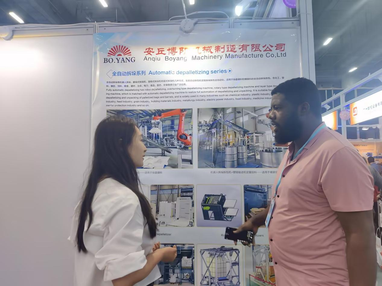 根据博阳机械公司市场战略规划,为进一步开拓海外市场,提高国外市场销售额,博阳公司由海外市场部闫涵部长带队参加广交会,展示公司多款全自动设备样机和全自动装车机等产品,参展设备的自动化、智能化程度高,有6项技术填补了国内空白。